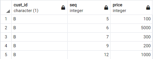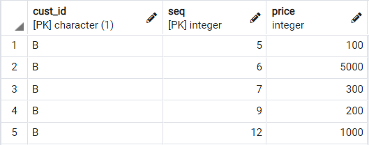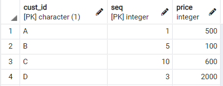 select a.cust_id, seq, price