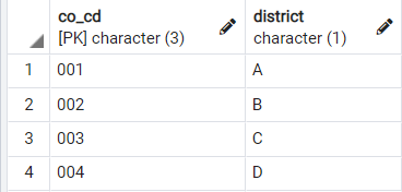 ( 레이아웃 : co_cd | district | emp_nbr )